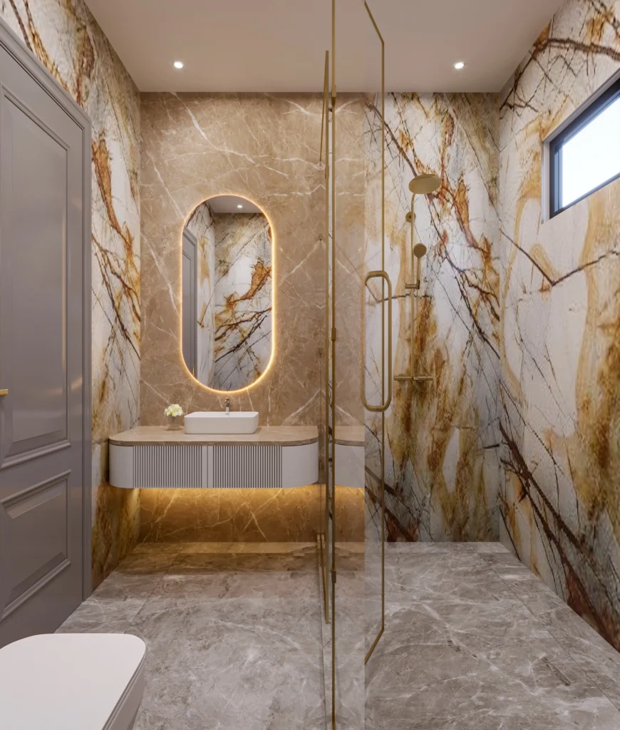 Luxury residential bathroom interior with marble finishes designed by Amartya Architects, residential architecture firms